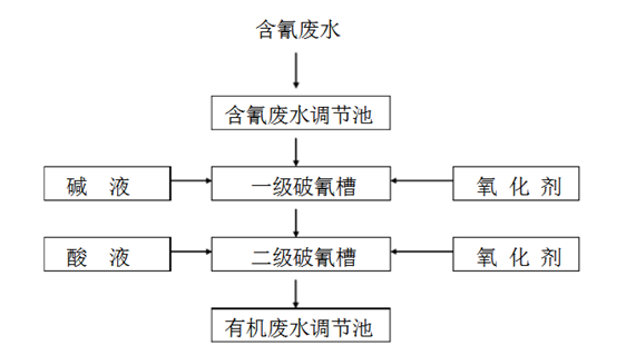 氫氰根離子用一般的絮凝沉淀法不能將其直接去除,必須通過氧化作用,打破其化學鍵的結構,最終使其降解,形成CO2和N2得已去除。