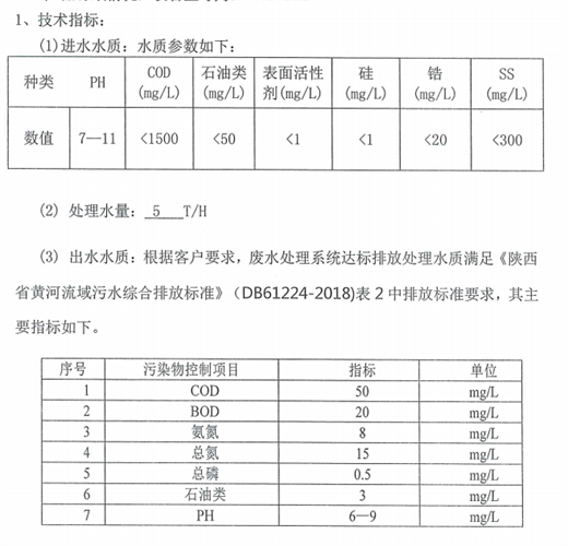 其涂裝廢水水質(zhì)和處理標(biāo)準(zhǔn)如下: