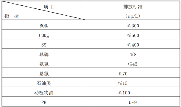 排放標(biāo)準(zhǔn)達(dá)到廣東省《水污染物排放限值》(DB44/26-2001)第二時(shí)段三級標(biāo)準(zhǔn)與《污水排入城鎮(zhèn)下水道水質(zhì)標(biāo)準(zhǔn)》(GB/T31962-2015)B級標(biāo)準(zhǔn)的較嚴(yán)值。