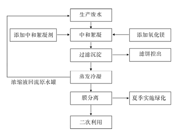 2、蒸發段工藝。中和槽濾液送往高效蒸發器,濾液蒸發濃縮,進人中和池。